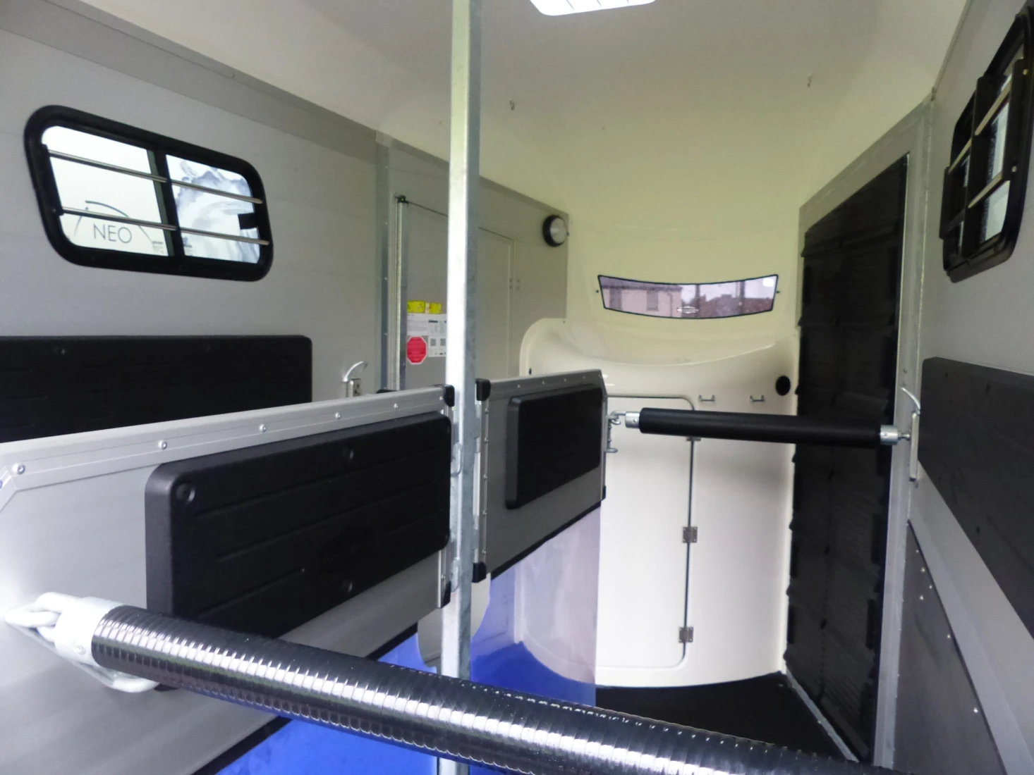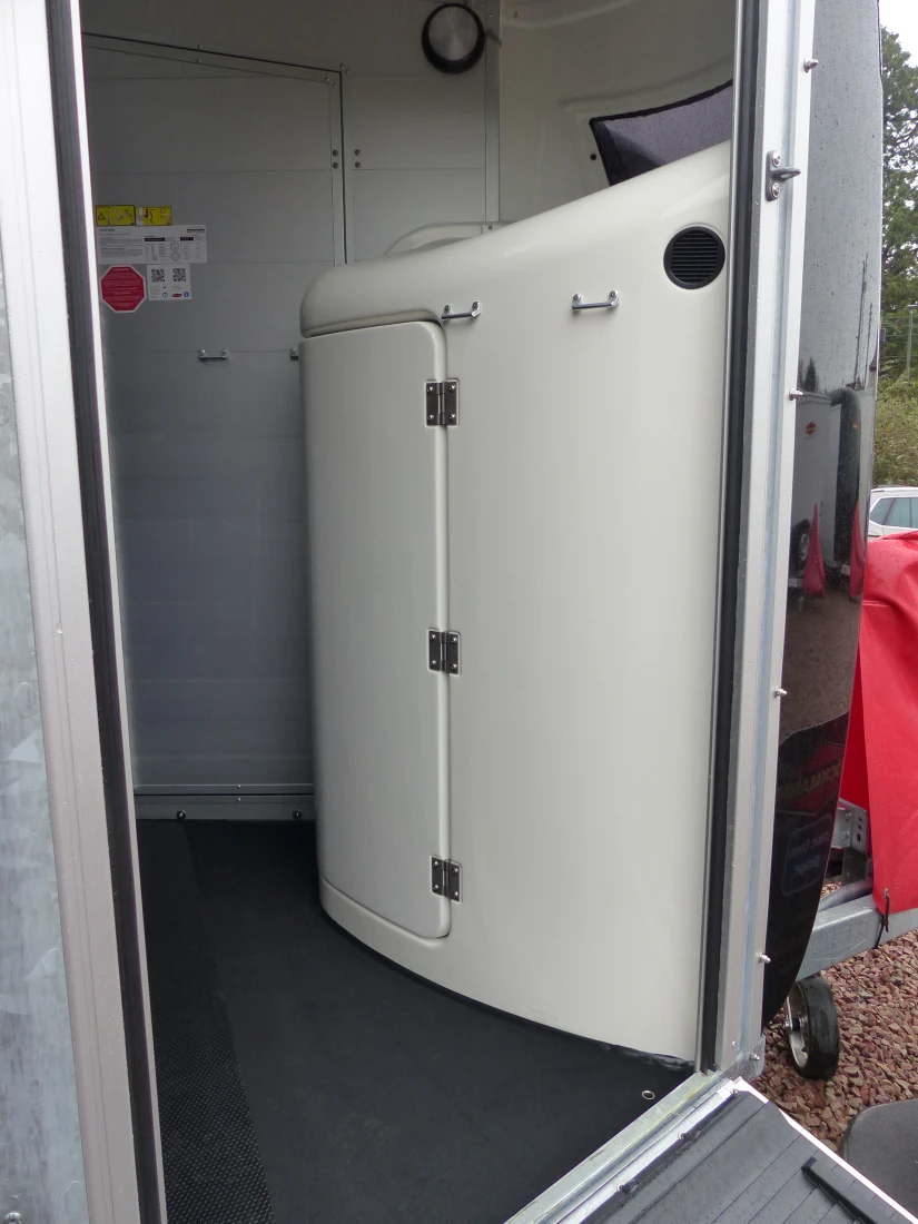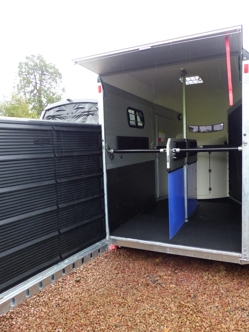 The new Portax K horse trailer redefines the concept of added value by offering a front exit, allowing for easy handling and access to the interior tack locker. The extra space in front of the horses provides a unique room layout that ensures the safety and comfort of both the horses and the handler. With the larger door and man-high entrance, accessing the tack locker has never been easier or more convenient. The trailer is designed with the ultimate convenience and safety in mind, making it ideal for transporting your horses with ease. The interior tack locker of the Portax K is optimally configured to maximize space and functionality. With the ability to access the tack locker from both inside the trailer and through the man-high entrance door, you can easily store and retrieve all necessary equipment for your horses. The added convenience of this feature makes preparing for your travels hassle-free and efficient. The thoughtful design of the interior layout ensures that every aspect of the trailer is designed with the comfort and convenience of both the horses and their owners in mind. In addition to the innovative front exit and interior tack locker, the Portax K is equipped with top-of-the-line features that enhance safety and performance. The World Class “WCFplus” chassis provides superior stability and durability, ensuring a smooth and secure ride for your horses. The MSS safety stall bar system and rear ramp/door further enhance the safety and ease of loading and unloading your horses. The Portax K is a game-changer in the world of horse trailers, offering unparalleled quality and functionality for both the horses and their handlers.