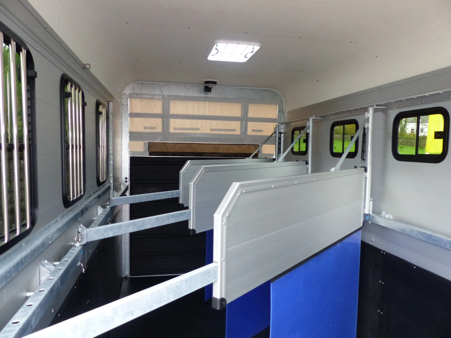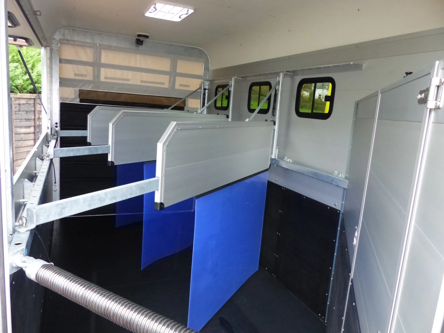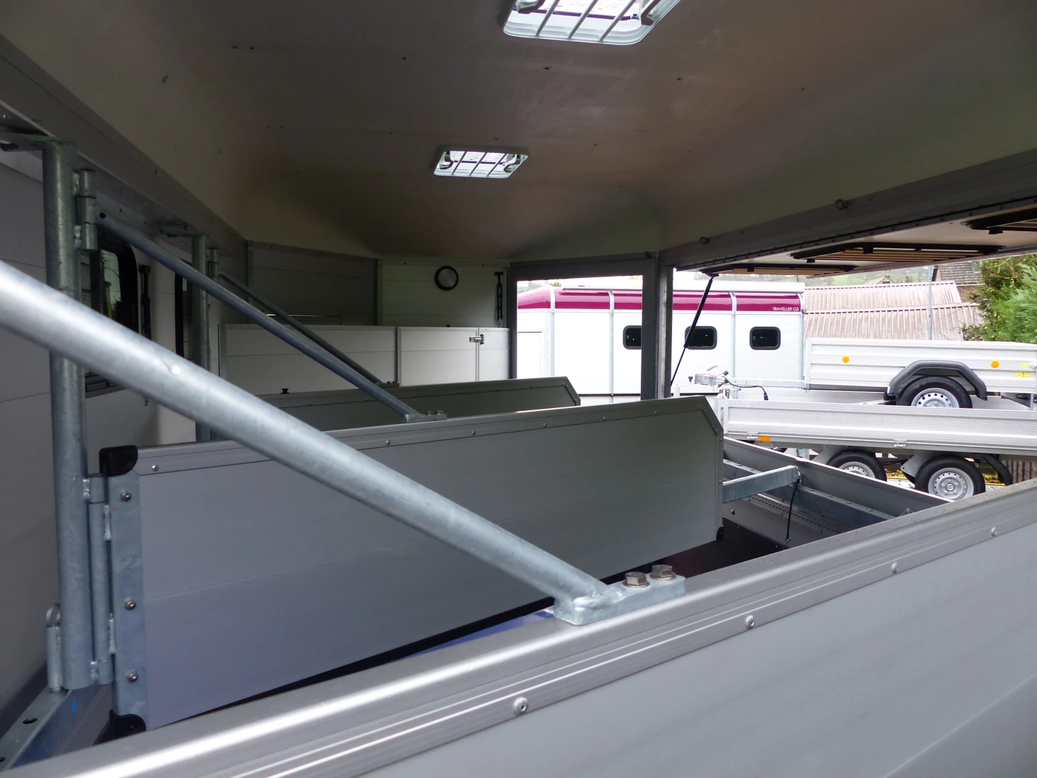 Double and triple benefits: With the Traveller G 3 you can transport three large horses at once - in the position that the horses prefer - standing diagonally. The very robust G models with their all-round steel bar are equipped with telescopic aluminium divider walls with a PVC curtain that can be adjusted at the side.